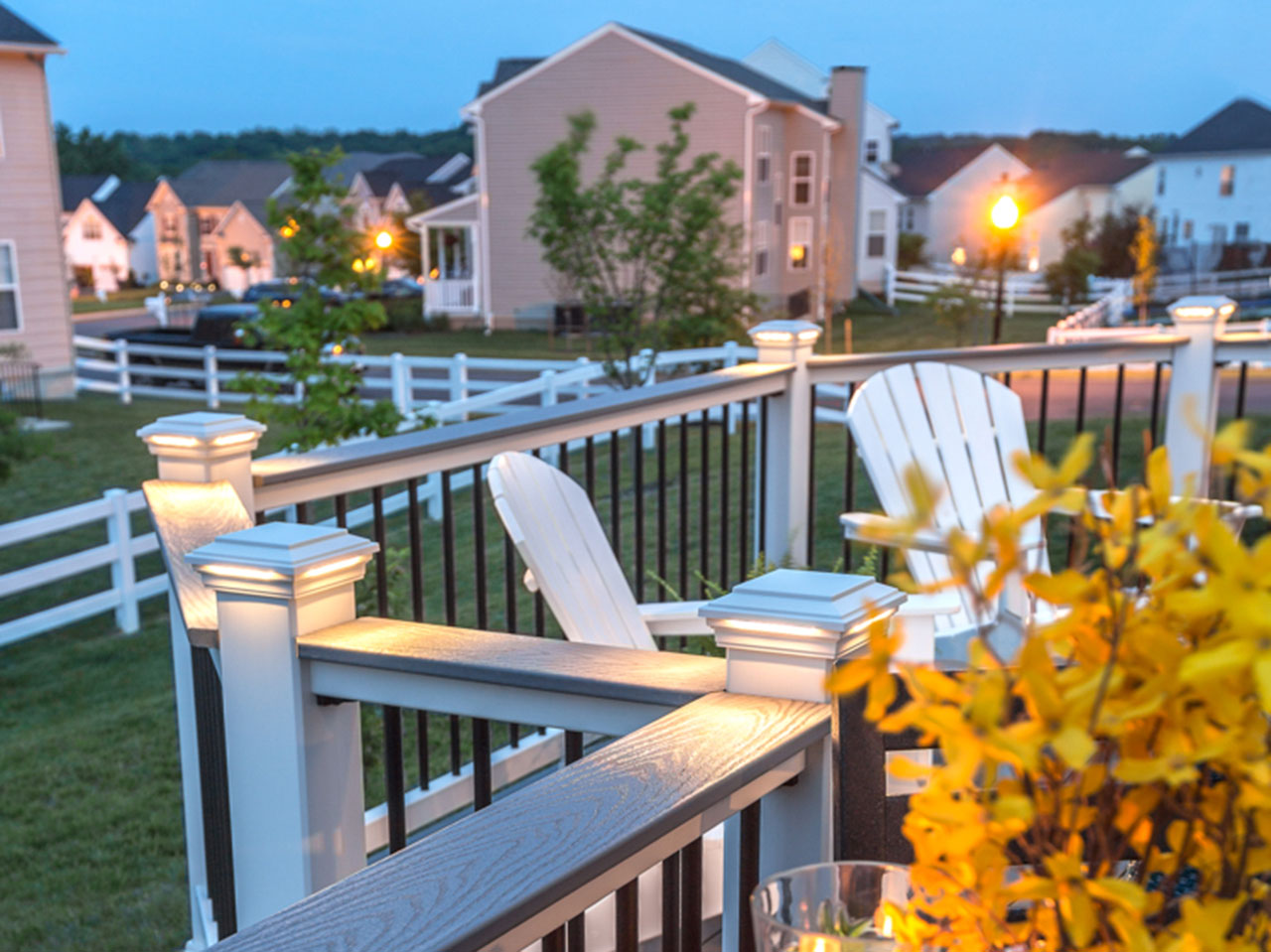 • Solar Lighting Options Available: Trex’s solar-powered post cap lights are a popular option. They collect energy during the day and automatically illuminate your deck at night for convenient, energy-saving perimeter lighting.